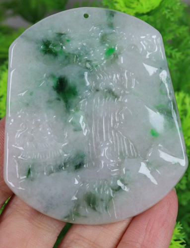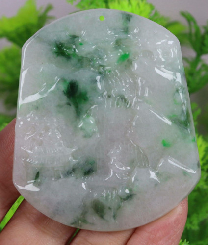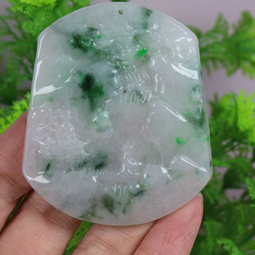 Certified Green 100% Natural Jade Jadeite Landscape Pendant