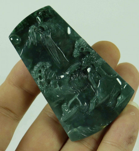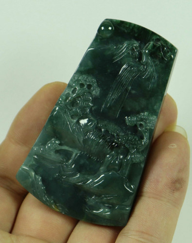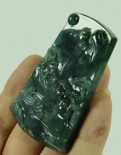 Dark Green Natural A JADE jadeite Two-sided Carved Pendant 山水