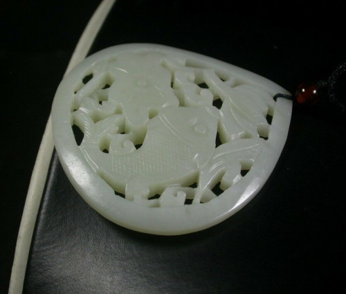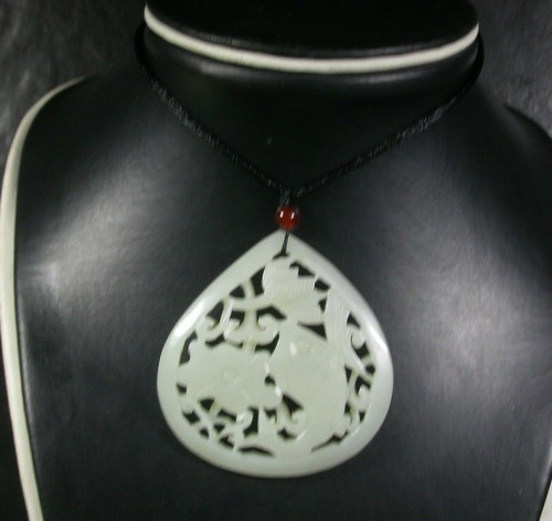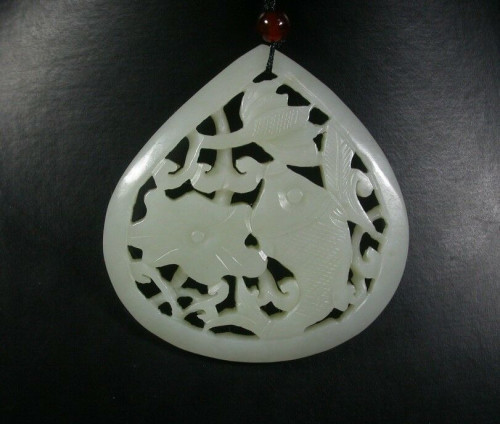 Certified 100% Natural Hetian Nephrite Jade pendant Fish Flower