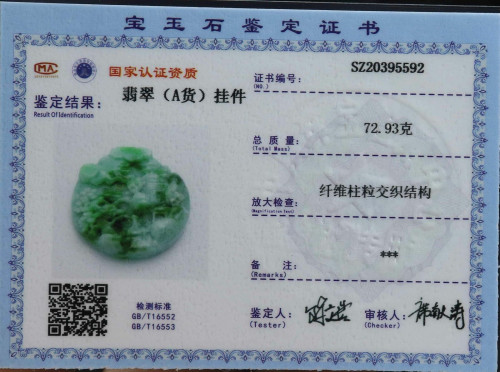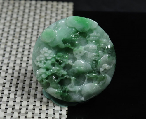 Cert'd Green 100% Natural A Jade jadeite Pendant landscape