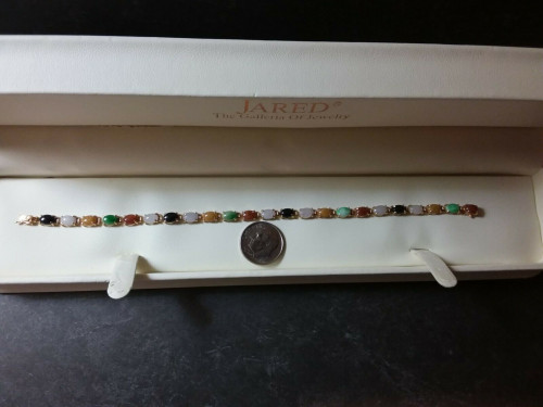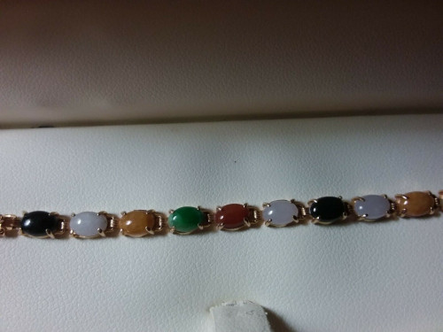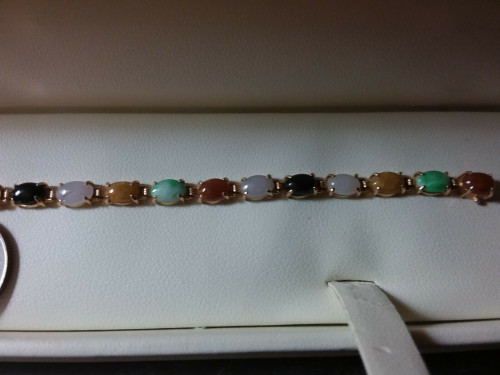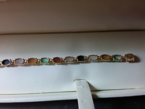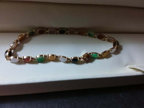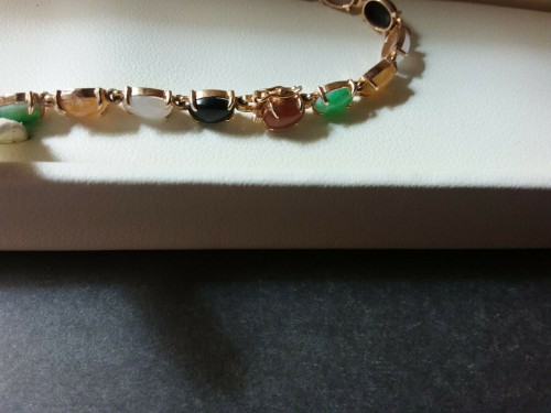 EUC Vintage 14K Yellow Gold Multi-Color JADE Bracelet