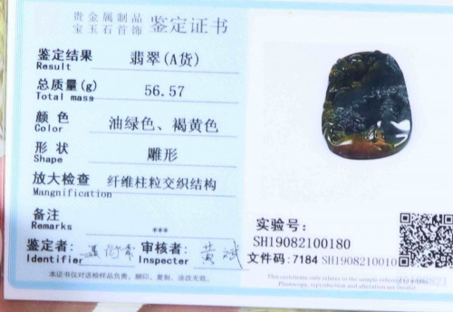 Certified Green yellow 100% Natural A Jade jadeite Landscape Pendant 89107N