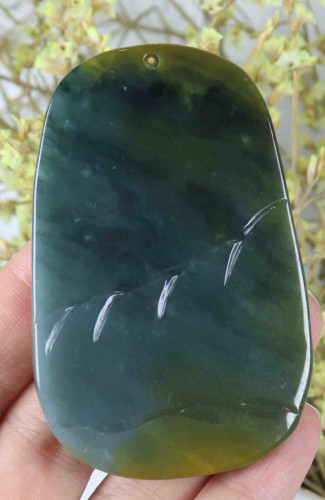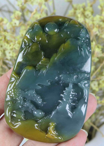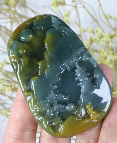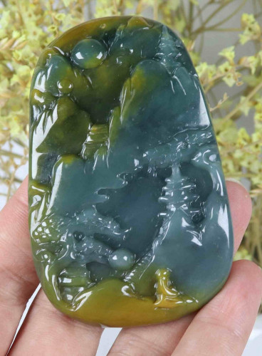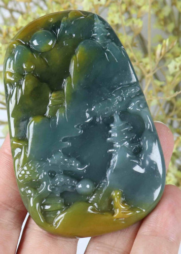 Green yellow 100% Natural A Jade jadeite Landscape Pendant