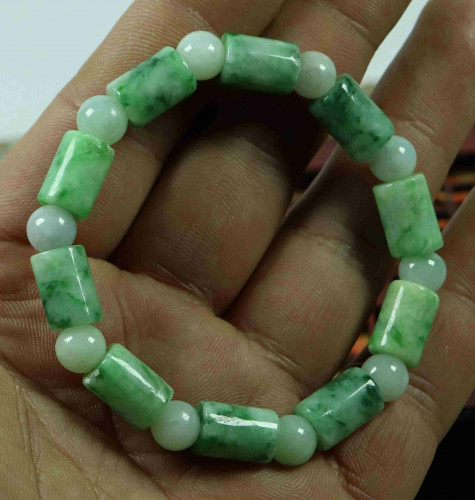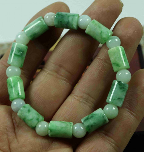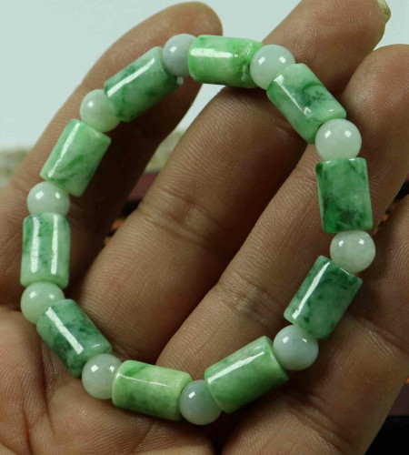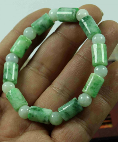 Certified Green 100% Natural A Jade Jadeite 9*9*13mm Barrel Bead Bracelet B541D