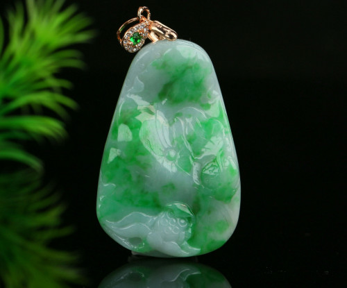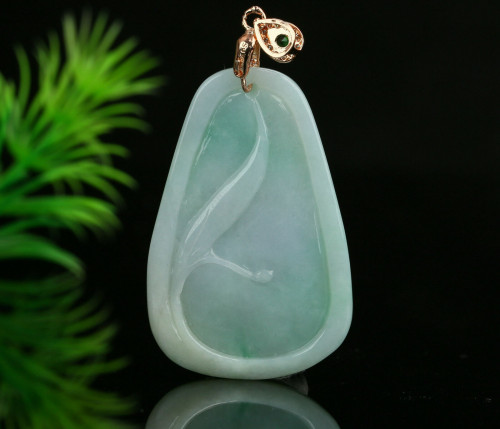 Cert'd Untreated Green Natural Grade A Jadeite Jade Pendant lotus leaf r785842