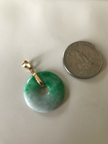 Beautiful light green jade and gold circle pendant.