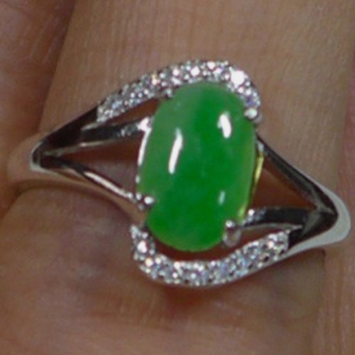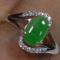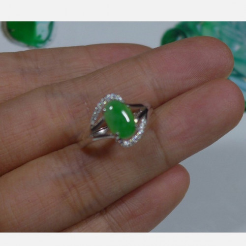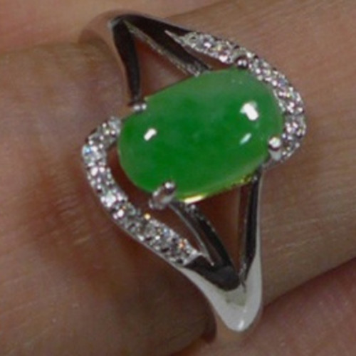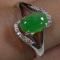Natural Type A Emerald Jadeite Jade Oval Cabochon S925 Ring