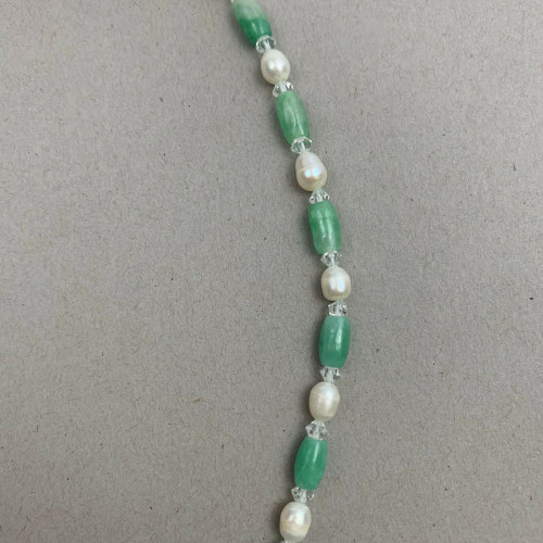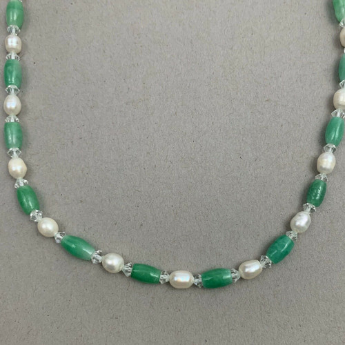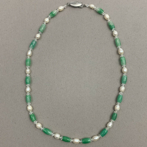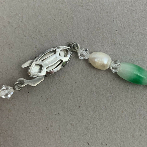Vintage Green Jade Jadeite Pearl Beaded Necklace Dainty
