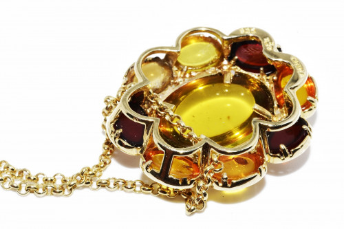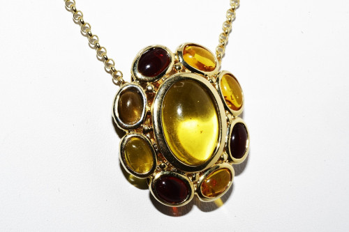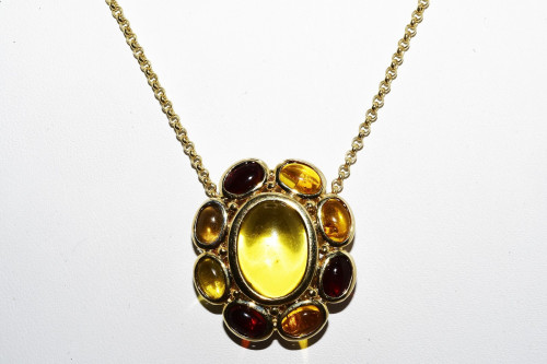 Silver 14.50CT Natural Citrine, Garnet & Quartz Halo Necklace