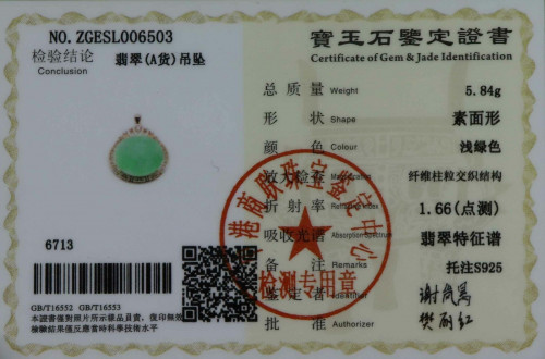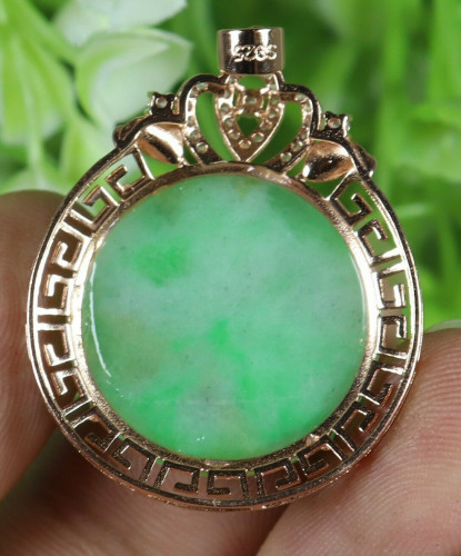 Certified Green 100% Natural A JADE jadeite 925 Silver Pendant