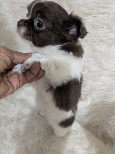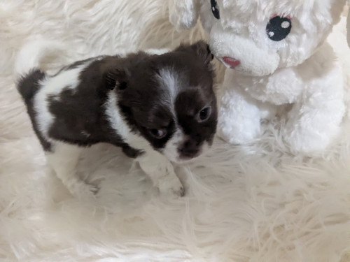 Meet Faith , a stunning exclusive beautiful apple head Chocolate n White Long coat female chihuahua.