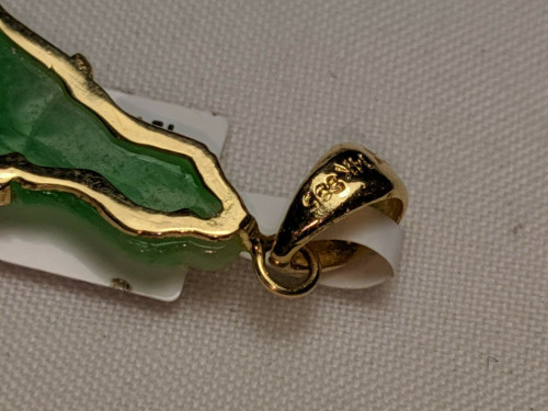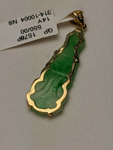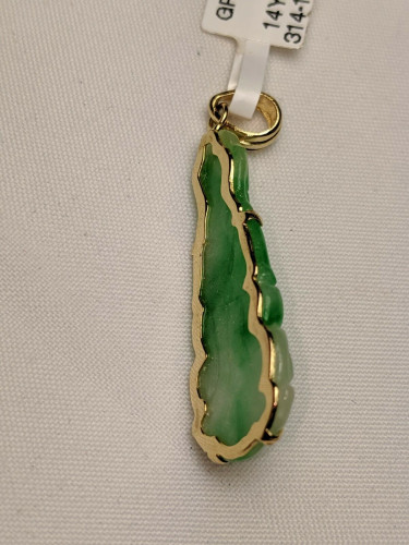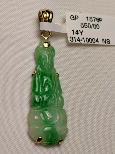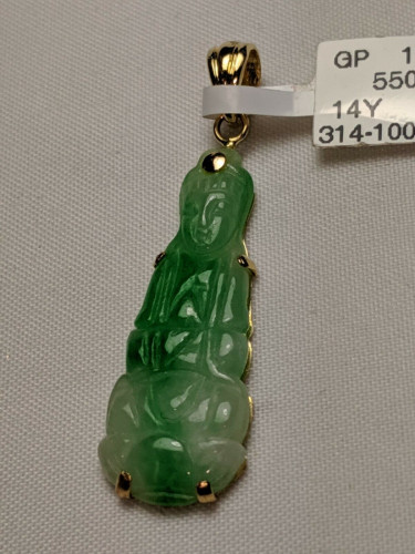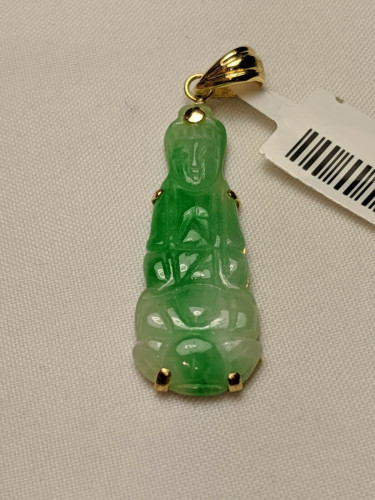 14K yellow gold green Jade lady buddha pendant
