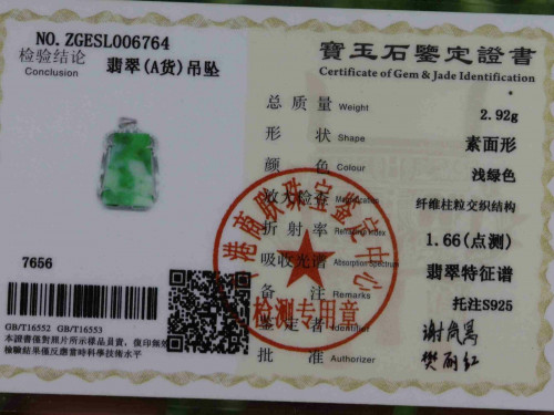 S925 Silver Certified Green 100% Natural A Jade jadeite Pendant C63782H3