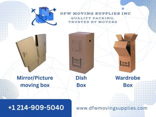 Planning a move and worried about broken dishes, damaged mirrors, or wrinkled clothes? Finding strong, reliable boxes can be stressful. At DFW Moving Supplies in Farmers Branch, Texas, we provide high-quality moving boxes designed to protect your valuables. From Mirror Box/Picture Box options for framed art, sturdy Dish Boxes with extra protection, to spacious Wardrobe Boxes with hanging bars, we have everything you need for a safe move.