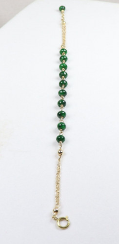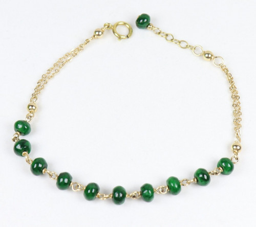 14K Gold Certified fashion natural jadeite Round bead string Bracelet 176615