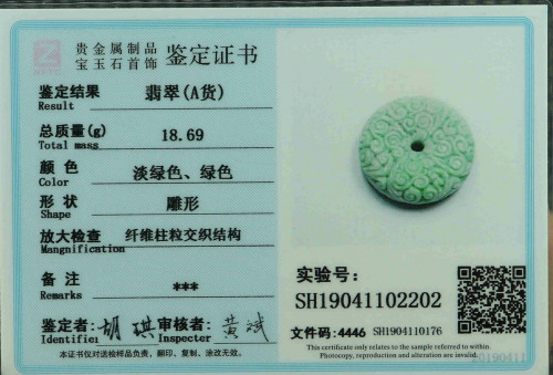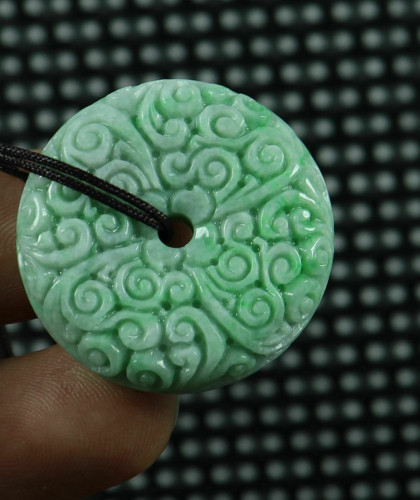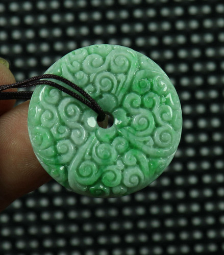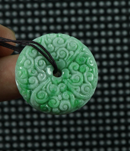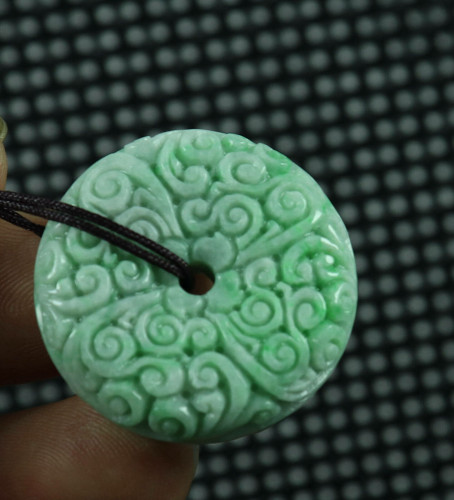 Cert'd dry Green 100% Natural A Jade jadeite Pendant FLOWER Peace buckle