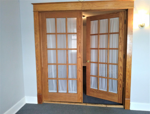 One-bedroom downtown upper apartment now available for rent. Includes, heat, water, sewer, garbage service and off-street parking. Tenant pays electric. Custom cabinets and stained-glass window in kitchen. Ceramic tile, vessel sink, and ample storage closet in bathroom. Large walk-in closet and French doors in bedroom. No dogs. Cat allowed with additional monthly fee. One-year lease and one-month security deposit required. Applicant must pass standard Tenant Verification Service credit and background check as well as income verification.