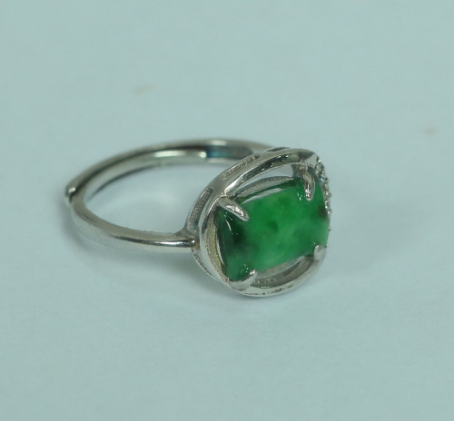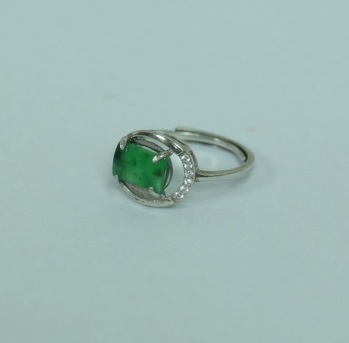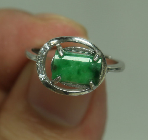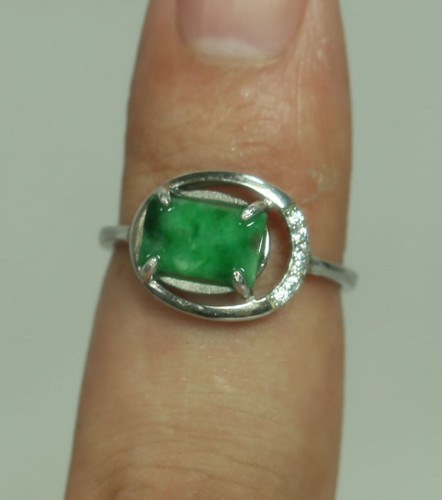 925 Silver Cert'd Genuine Untreated Green Emerald A Jadeite Ring Gift z8078