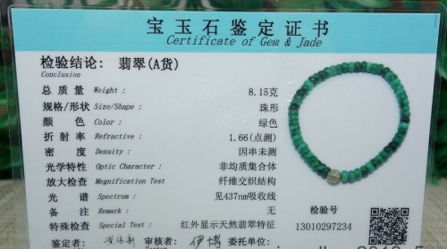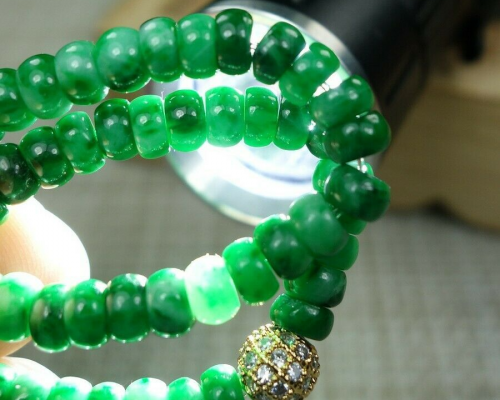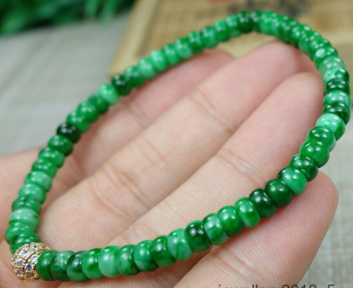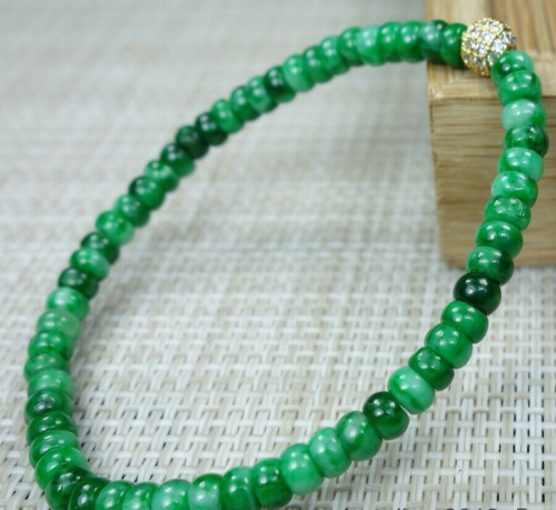 Certified Green 100% Natural A Jadeite jade Beads Bracelet 算盘珠 手链