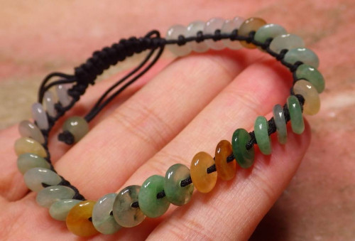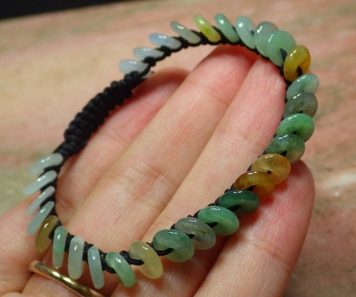 Certified 3 Color Natural A JADE Jadeite Bead Beads Bangle Circle Bracelet 翡翠手链