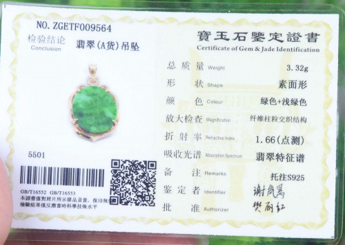 Free send with certificate This item that we are selling is 100% natural Grade A jadeite (fei cui) jade, without any artificial dyeing, and send with the certificate.