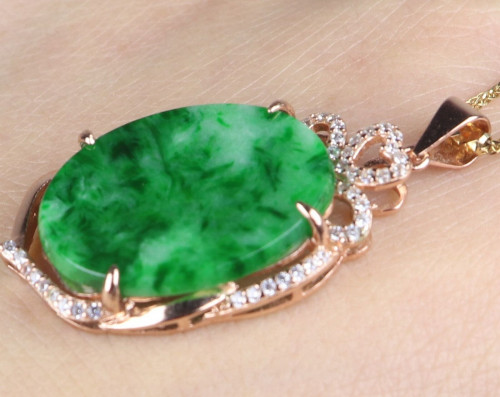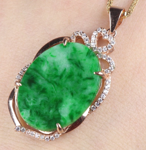 Certified Green Natural A Jade Jadeite 925 Silver Inlaid Fashion Pendant 167316