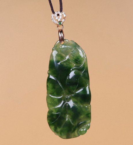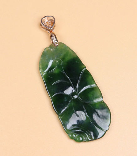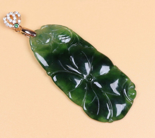 Certified Green Natural A Jade jadeite lotus pendant 925 Silver