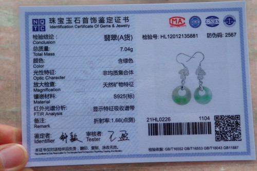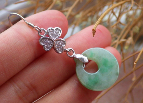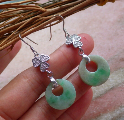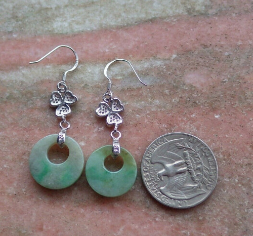 Sterling Silver 0.925 Natural A Jade jadeite Circle Earrings Dangle 耳环 640499