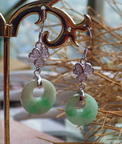Sterling Silver 0.925 Natural A Jade jadeite Circle Earrings