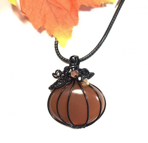 Black Wire Wrap Carnelian Pumpkin Pendant