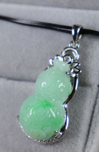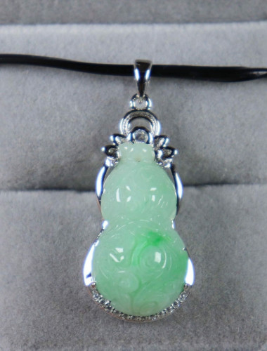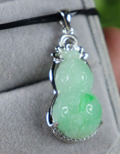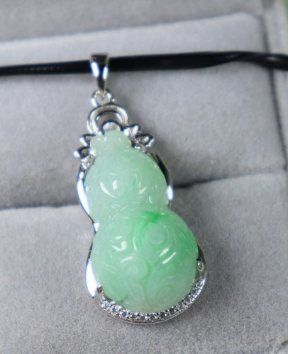 S925 Silver Certified Green 100% Natural A Jade jadeite Pendant gourd C5488Q