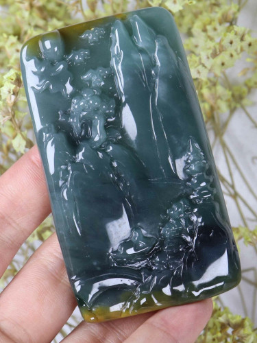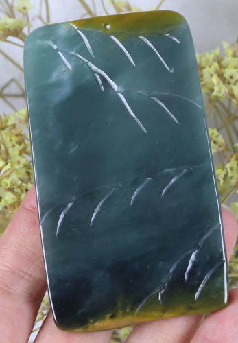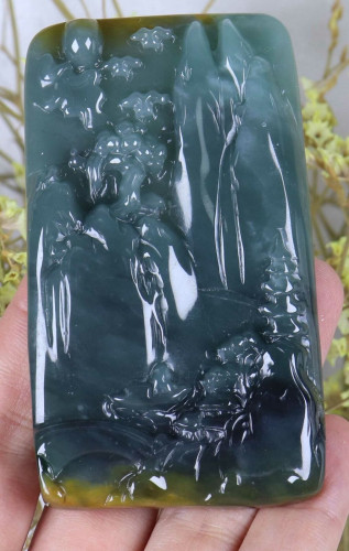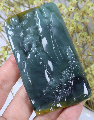 Green yellow 100% Natural A Jade jadeite Landscape Pendant