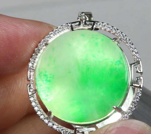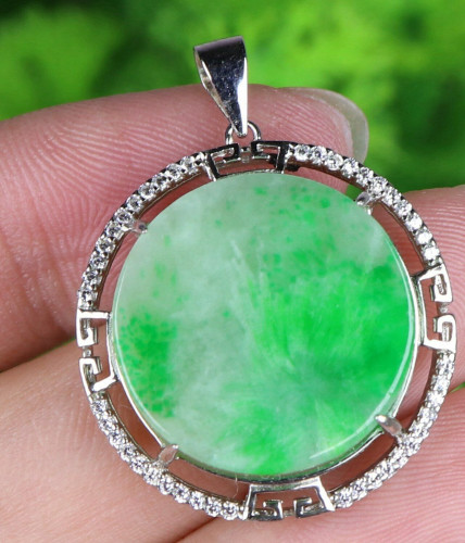 Green Natural A Jade Jadeite 925 Silver Inlaid Fashion Pendant