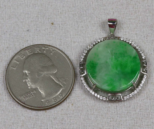 Certified Green Natural A Jade Jadeite 925 Silver Inlaid Fashion Pendant 17859