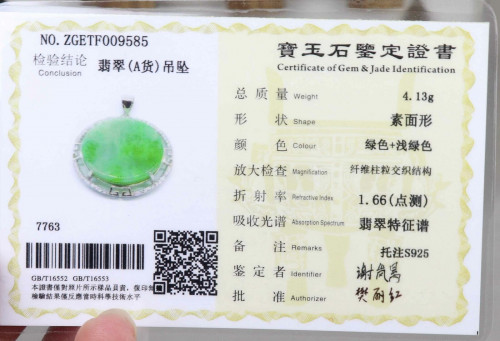 (fei cui) jade, without any artificial dyeing, and send with the certificate.
