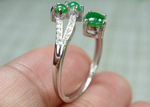 Certified Icy Green 100% Natural A jadeite jade Ring S925 silver 戒指(Free Size)