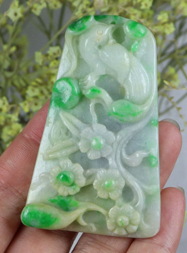 Green 100% Natural A Jade jadeite Magpie Plum blossom Pendant
