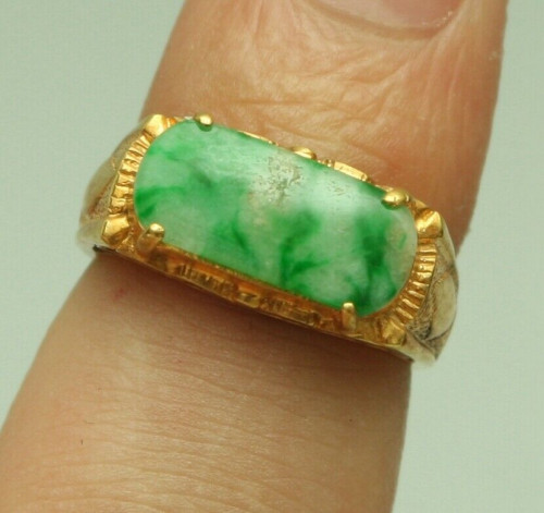 Genuine Untreated Green A Jadeite Jade 925 Silver US 6 Ring