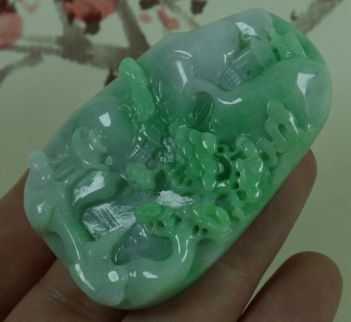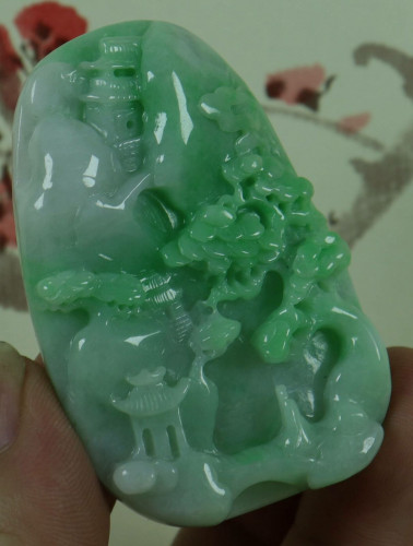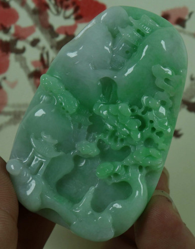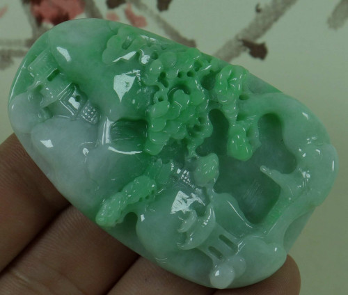 Cert'd Green Natural A Jade jadeite Pendant Carved Landscape 山水