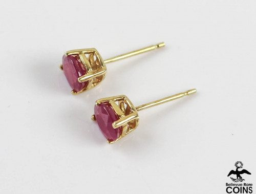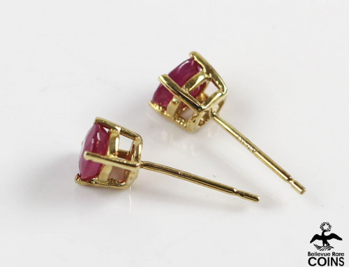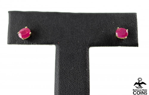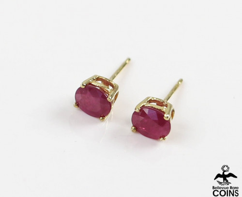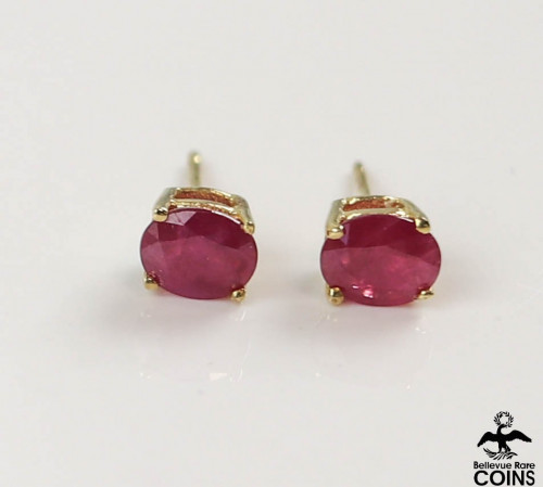 14k Yellow Gold Oval Cut Ruby Stud Earrings w/o Original Backs