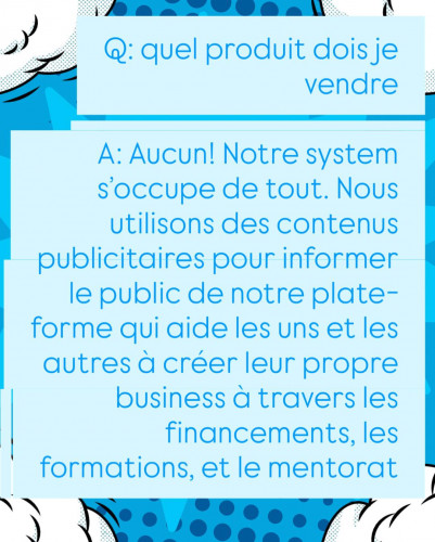 Moi, j’accompagne les personnes qui veulent un deuxième revenu à lancer leur business digital ou numérique.Tu seras formé, financé, coaché. Tu n’as pas à tout apprendre seul