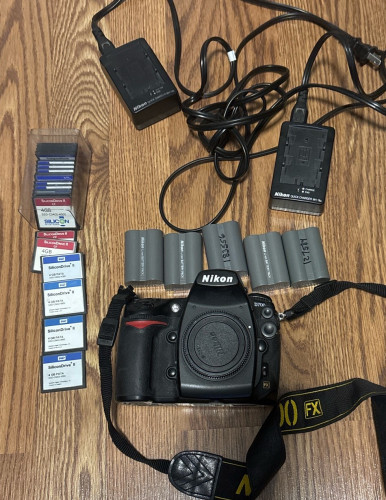 5 Batteries, 2 Chargers, Lots of SD cards. The D700 (Body Only) offers pro-level performance and an extensive array of features and innovations in a comfortably nimble platform. Fast, accurate 51-point AF system , 3D Focus Tracking and two Live View shooting modes Capture images to CF I/II cards , compliant high-speed UDMA CF cards that will enable recording speeds up to 35 megabytes/second. Effective Still Resolution 12.87 MP $850 value