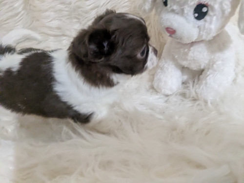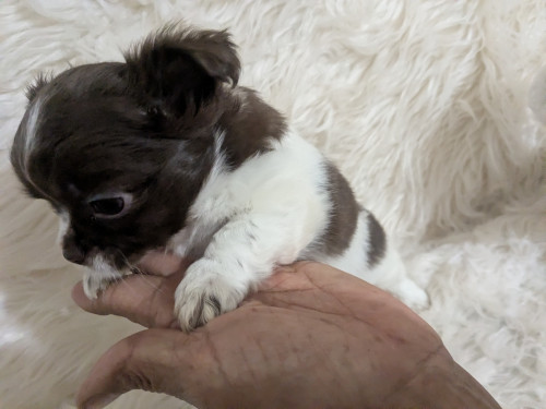 Meet Faith , a stunning exclusive beautiful apple head Chocolate n White Long coat female chihuahua.