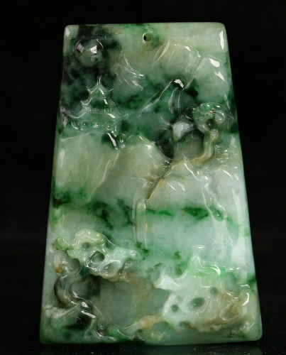 Cert'd 2 Color Natural Grade A Jade jadeite Pendant landscape 山水 r02481251