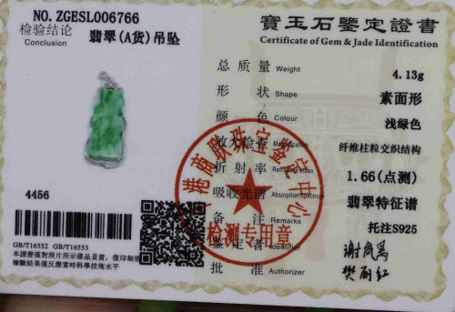S925 Silver Certified Green 100% Natural A Jade jadeite Pendant C63803H3