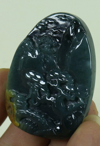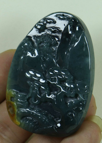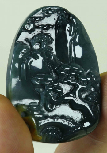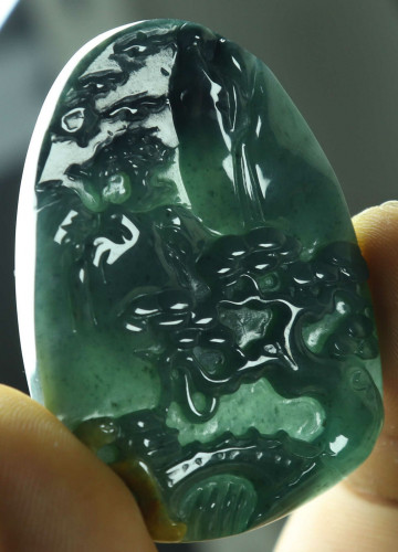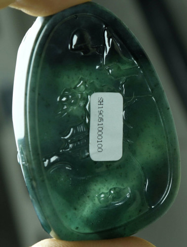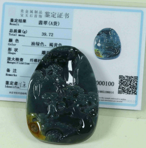 Cert'd Dark Green Natural A JADE jadeite Carved 2-sided Pendant