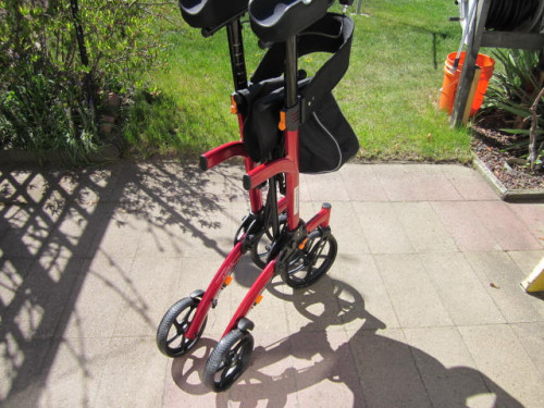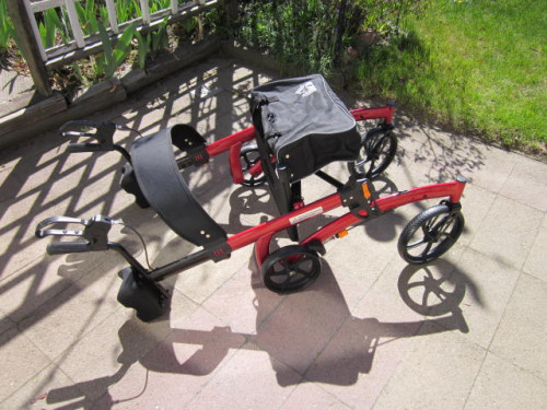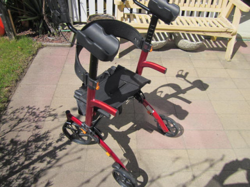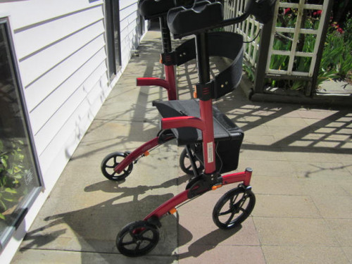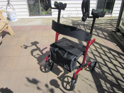 IN KELOWNA. NEARLY BRAND NEW HOMCOM ARM TROUGH UPRIGHT ROLLATOR WALKER FOR SALE. VERY LIGHT WEIGHT ONLY 19 POUNDS. SEAT HEIGHT MEASURES 21" HIGH , TROUGH HEIGHT RANGES FROM 36" TO 46" HIGH. FEATURES INCLUDE : COLLAPSIBLE STORAGE POUCH , ERGONOMIC BACK REST , SIDE FOLDING AND RECLINING FRAME FOR EASY STORAGE IN VEHICLES , AND REAR WHEEL LOCKING BRAKES. USED TO STABILIZE POSTURE ,TAKE STRESS OFF OF BACK ,WRISTS AND HANDS.