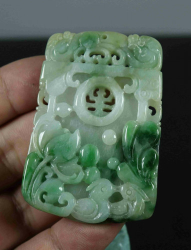 Certified Green 100% Natural A Jade jadeite Pendant mandarin duck 鸳鸯