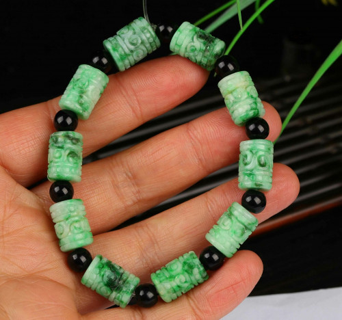 Green 100% Natural Grade A Jade jadeite Bead Bracelet Bangle